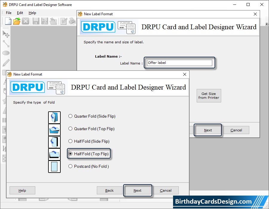2) Select an option to design Card and Label (Create Label by Using Wizard) and Click on 'Next' button.